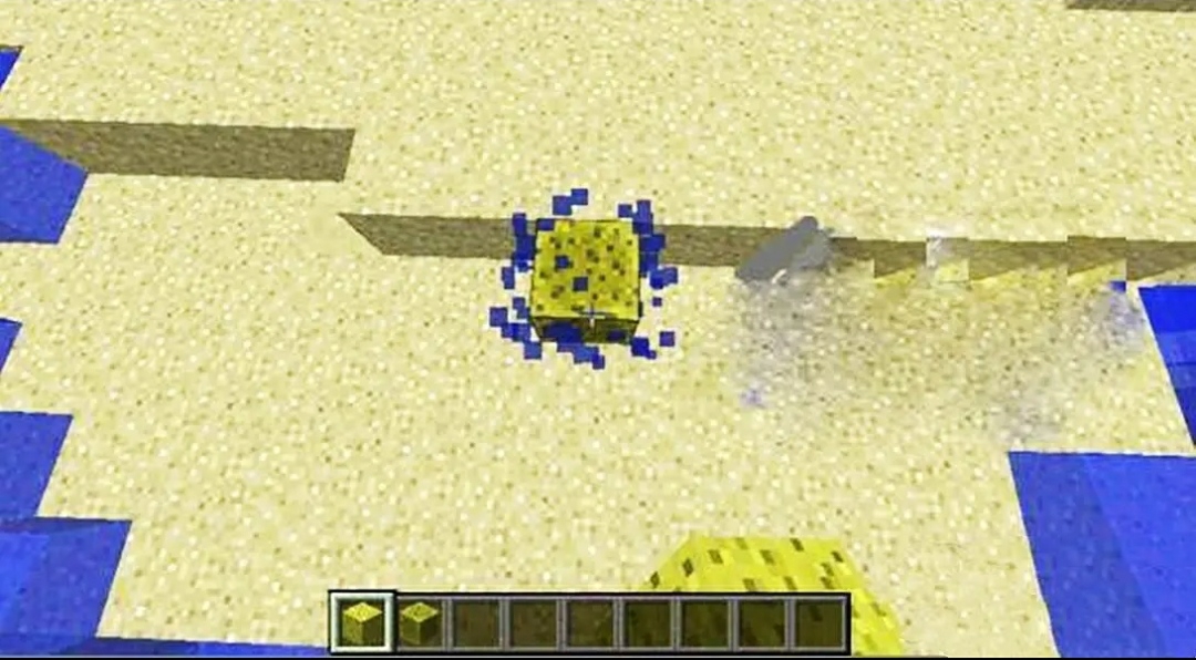 MC在物品转换方面做的还是比较到位的,比如说将水桶倒掉后剩一个空桶,湿的东西放到火上烤,就能变成干的。一种有用的干湿物品就是海绵,干海绵可以用来吸水,弄干海绵可以将其放到干燥的地方。下界和沙漠都是比较干燥的地方,将湿的海绵扔到地上,就会被晒干水分。不过如果是倒一桶水,就能保持住足够多的水。这多少有些矛盾,用一块海绵吸干一滩水,就能将水晒干。而直接倒一滩水,就能保持住原样不被晒干。