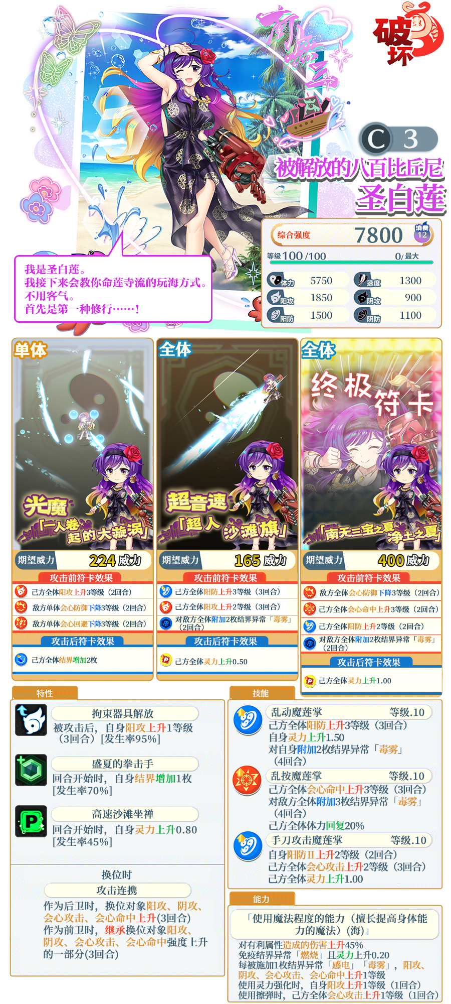 ※「被解放的八百比丘尼 圣白莲」需要使用同名伙伴或者「巫之替身」进行界限突破。不同泛异记号的伙伴、「巫之替身」以外的替身无法对其进行界限突破。