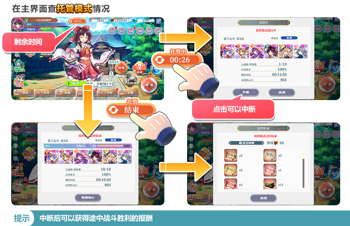 ※若托管模式在中途中断,则直接获得中断前的报酬。
