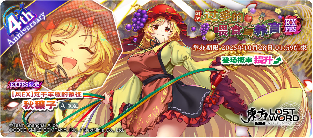 ※「复刻 过多的喂食与养育 EXFES」中需要交换P350才能交换「[风EX]过于丰收的象征 秋穰子」。