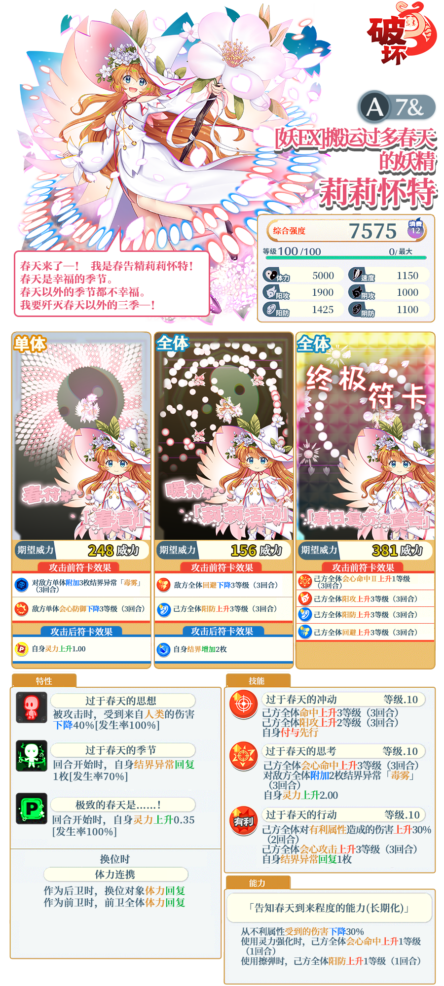 ※「[妖EX]搬运过多春天的妖精 莉莉怀特」需要使用同名伙伴或者「大替身」进行界限突破。不同泛异记号的伙伴、「大替身」以外的替身无法对其进行界限突破。