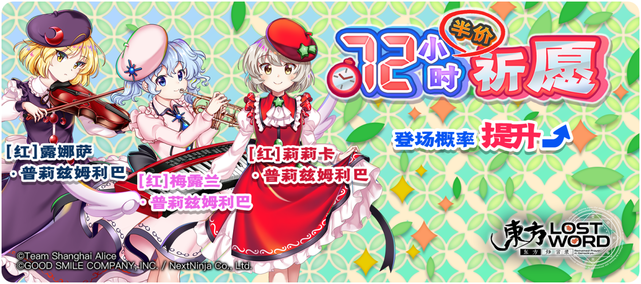 72小时限定神结晶半价祈愿(300神结晶),共3次。