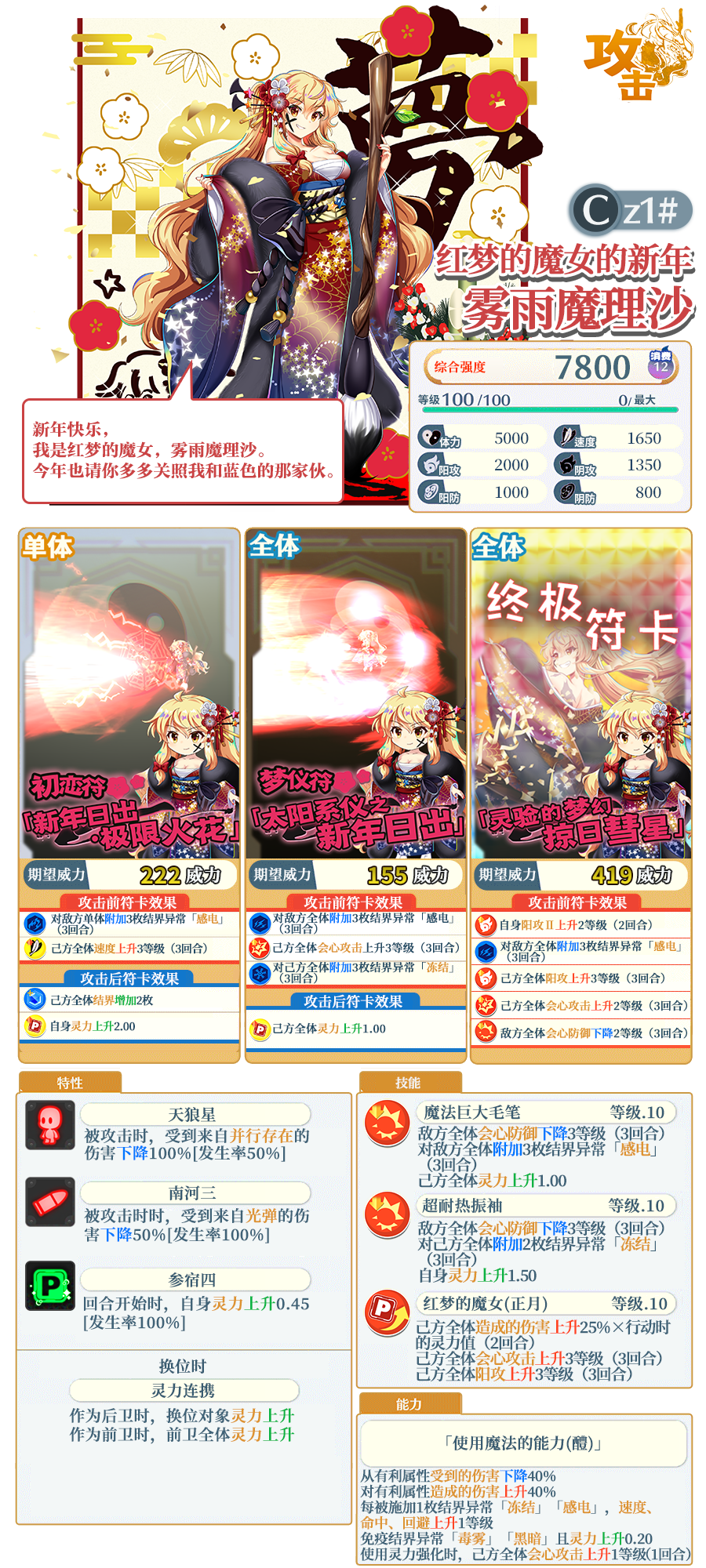 ※「[红梦的魔女的新年]雾雨魔理沙」需要使用同名伙伴或者「巫之替身」进行界限突破。不同泛异记号的伙伴、「巫之替身」以外的替身无法对其进行界限突破。