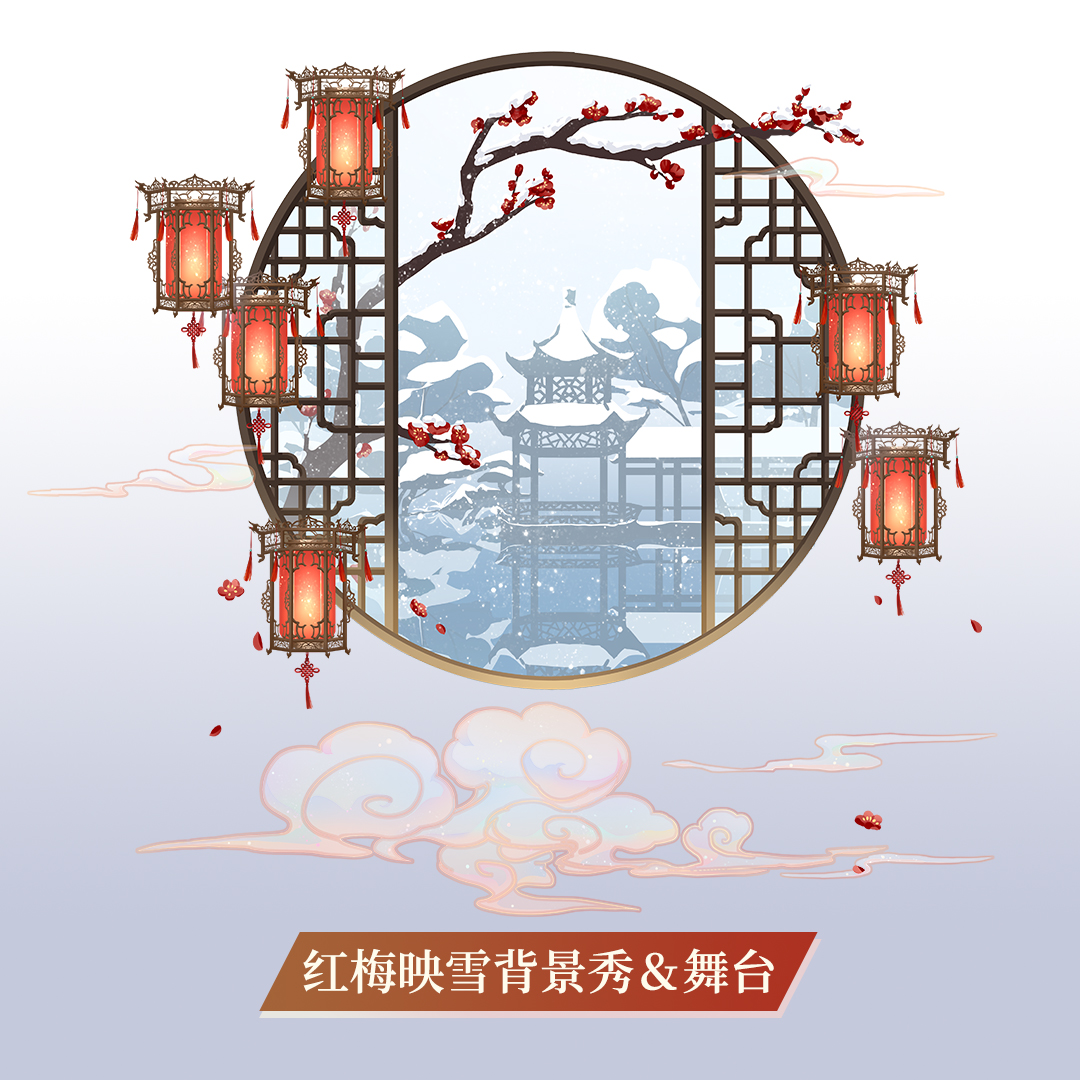 光阴的回廊活动更新,参与活动可获得融雪之恋套装,融雪之恋舞台,恋语贴纸组合。红梅映雪套装,红梅映雪背景秀。