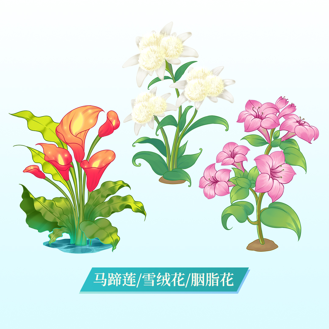 花仙世界引进全新花种,快来种植马蹄莲、雪绒花和胭脂花吧!
