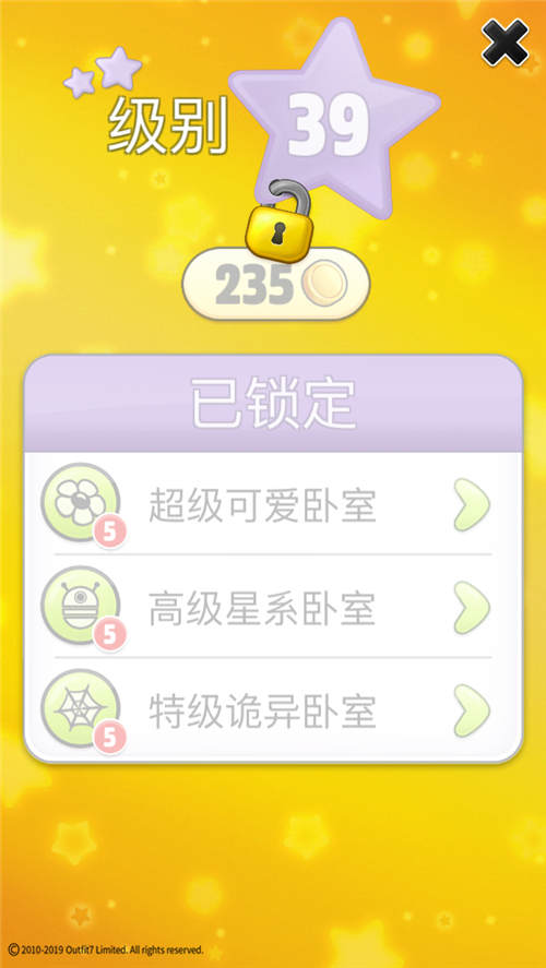 39级:235金币、超级可爱卧室、高级星系卧室、特级诡异卧室;
