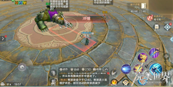 (冲撞)蕴象使用冲撞时,会在它的正前方出现长方形技能释放提示,如果我们没有及时左右移动躲开,那么会被蕴象撞飞!