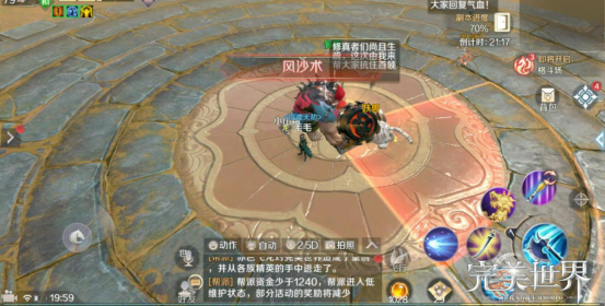 (风沙术)饕餮会对前方释放呈90度扇形的技能,而当饕餮技能还未释放出来的时候,近距离的队友可以往饕餮正面跑,并且同时左右移动来躲开风沙术。