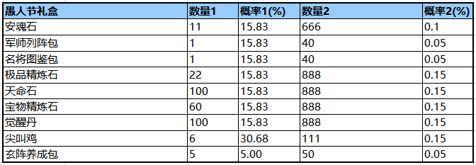 备注:以上概率均为单个开启「愚人节礼盒」的概率