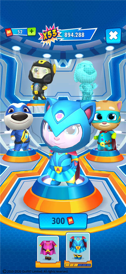 2、然后会进入该角色的详情页面。如图,有五个角色:汤姆猫、安吉拉、汉克狗、金杰猫、狗狗本,只要点击任意一个角色,选择后就可以完成角色切换了(切换前需要先解锁该角色);其中每个角色有两套衣服,我们还可给角色更换衣服哦(需要已收集到整套衣服)。