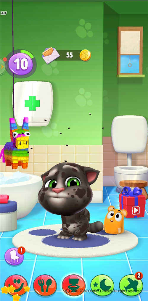 要哄它开心,汤姆会高兴、饥饿、困倦、厌烦……它的感情根据您和它游戏的方式变化。