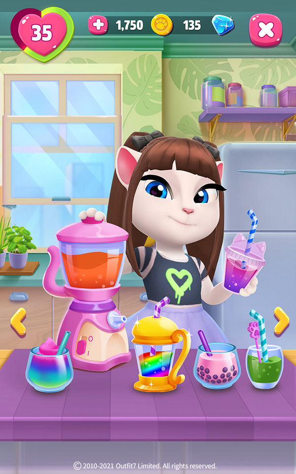 宅家的日子,有人选择躺平,不过相信更多小伙伴会倾向于追求新兴趣爱好。比如在《我的安吉拉2》里,当小伙伴们与安吉拉呆在家里的时候,可以尝试利用厨房的榨汁机,将不同的食物混合搅拌,做成果汁或者冰沙,让安吉拉进行试吃评判。又或者是发挥自己的艺术天分,给卧室床头的挂画涂上缤纷的色彩,打造一幅光彩夺目的艺术装饰品!
