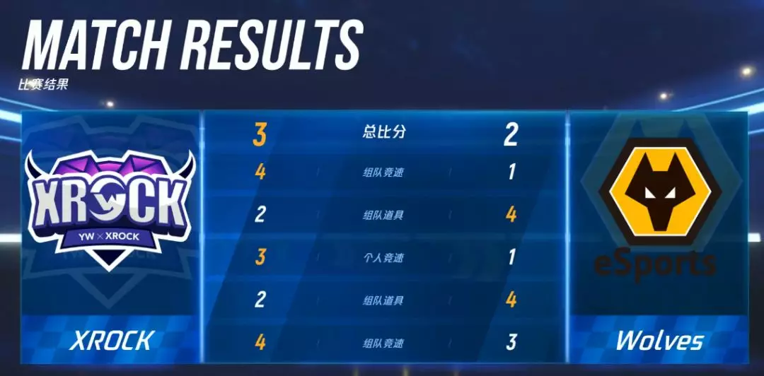 在最后的第二轮团队竞速赛中,XROCK虽然前期拿到优势,但Wolves却在落后的情况下追击,一度令XROCK陷入绝境。好在最后一局决胜赛中,XRCOK拿出全部实力,选择了自己最擅长的“太空蜿蜒跑道”,成功打败了Wolves。最终XROCK险胜Wolves,赢得了第二天的比赛胜利。