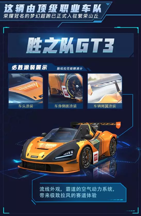 传说级竞速超跑,带你探索速度的极致!今日《跑跑卡丁车官方竞速版》更特别上线顶级职业车队荣耀冠名的传说级竞速赛车“胜之队GT3”,颜值超高的橙色旋风,性能卓越的超跑实力,将带你在繁荣山丘感受风驰电挚的快感!