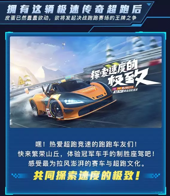 作为传说级竞速赛车的胜之队GT3,不仅造型酷炫潮流,在性能上也相当强悍,各项指标都保持了其顶级赛车所具有的高水准,将带你在繁荣山丘“探索速度的极致”。帅气的漂移、迅猛的加速、稳定的高速表现,无论在直道还是过弯的表现都是令人期待的,其优秀的提速能力和集气能力造就的极致速度,以及目前游戏中唯一的氮气喷射时的后轮特效,相信喜爱赛车的玩家都无法抵抗它的极速魅力。有着卓越性能的胜之队GT3,想必今天上线起,就会成为车友们竞速、排位必选的新宠,它将带你追风疾驰,掌控属于自己的赛道!
