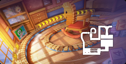 从大城堡宽敞奢华的大厅出发,沿着大理石阶梯一路向左,穿过道路尽头的走廊,便能来到路易少爷的玩具世界。缤纷的积木拼接起弯弯的梯桥,拱卫着精致的木马,可爱但危险的机器人守卫,守护在房间通道的另一端,将用闪电来惩戒每一位试图窥探路易少爷童心的闯入者。