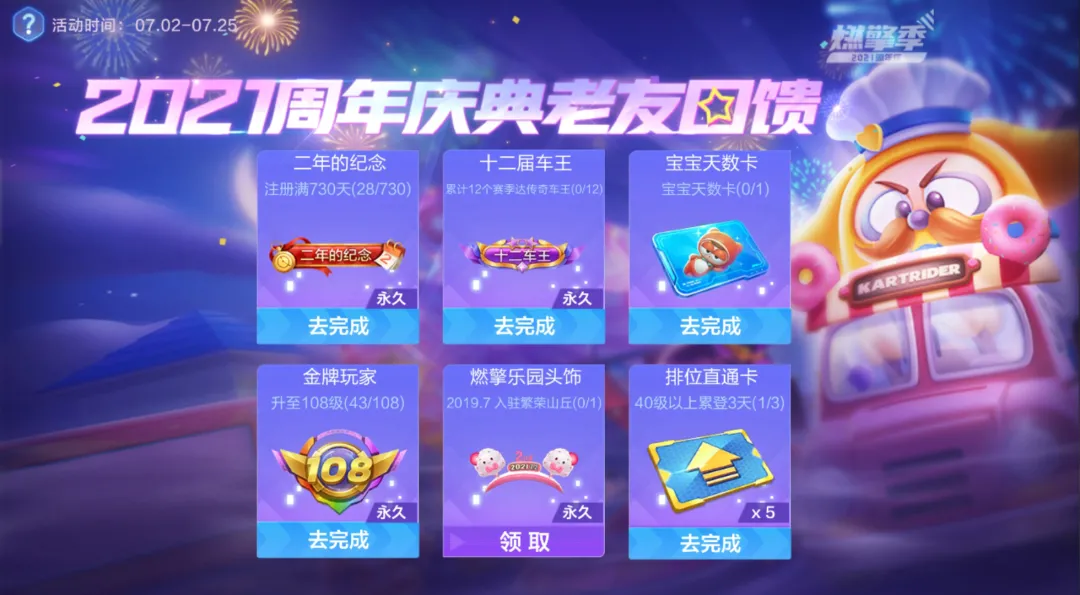 7月2日-7月25日,甜蜜时光机温馨登场~车友们从指定日期开始进行登录,达到所需的累计天数后,即可免费领取多种装扮好礼。