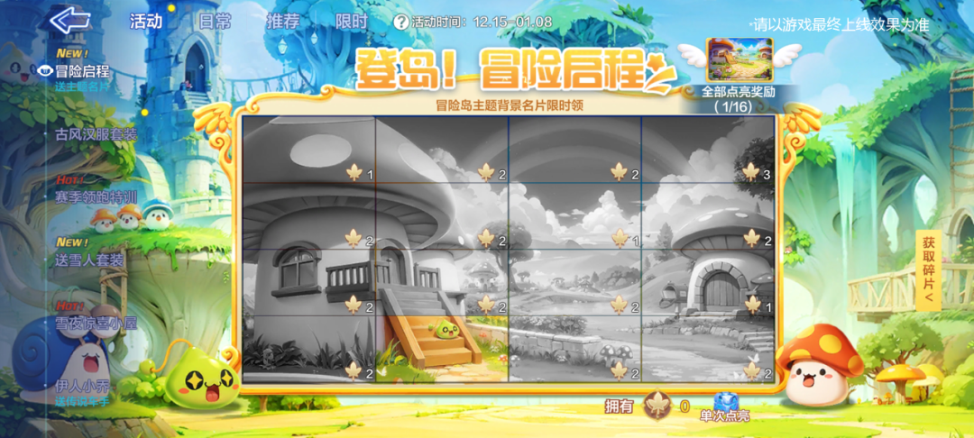 穿过精灵的洞穴,与彩虹挥手,将岛中美景尽收心间!12月15日起,【冒险启程】活动率先开启,完成任务点亮登岛地图,领取限定联动背景!