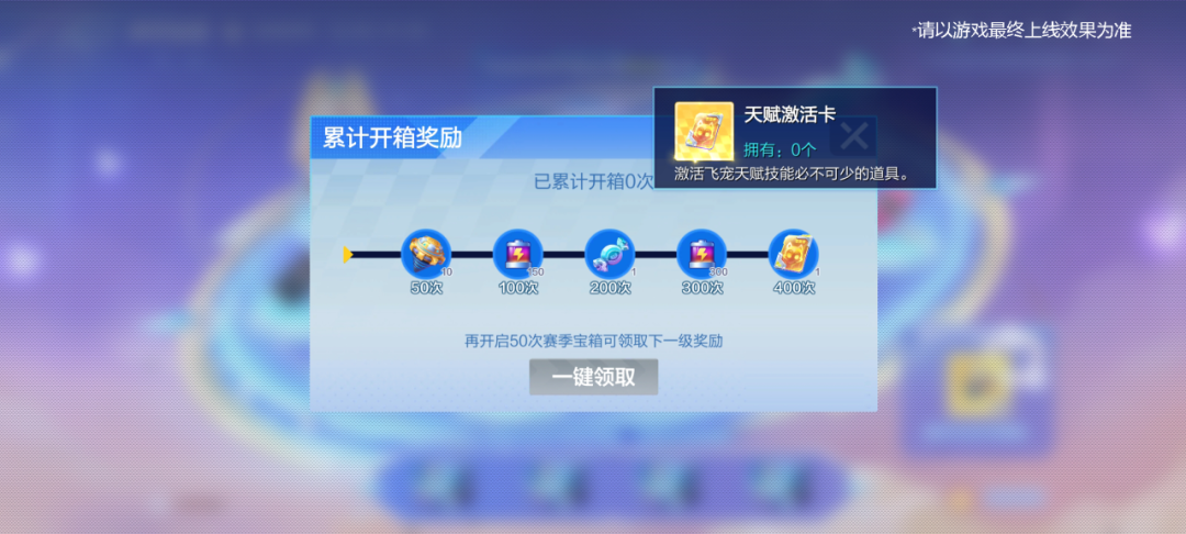 相信细心的车友们已经发现啦,在本赛季全新改版的赛季宝箱中,新增了从未出现过的奖励:天赋激活卡、飞宠训练书!