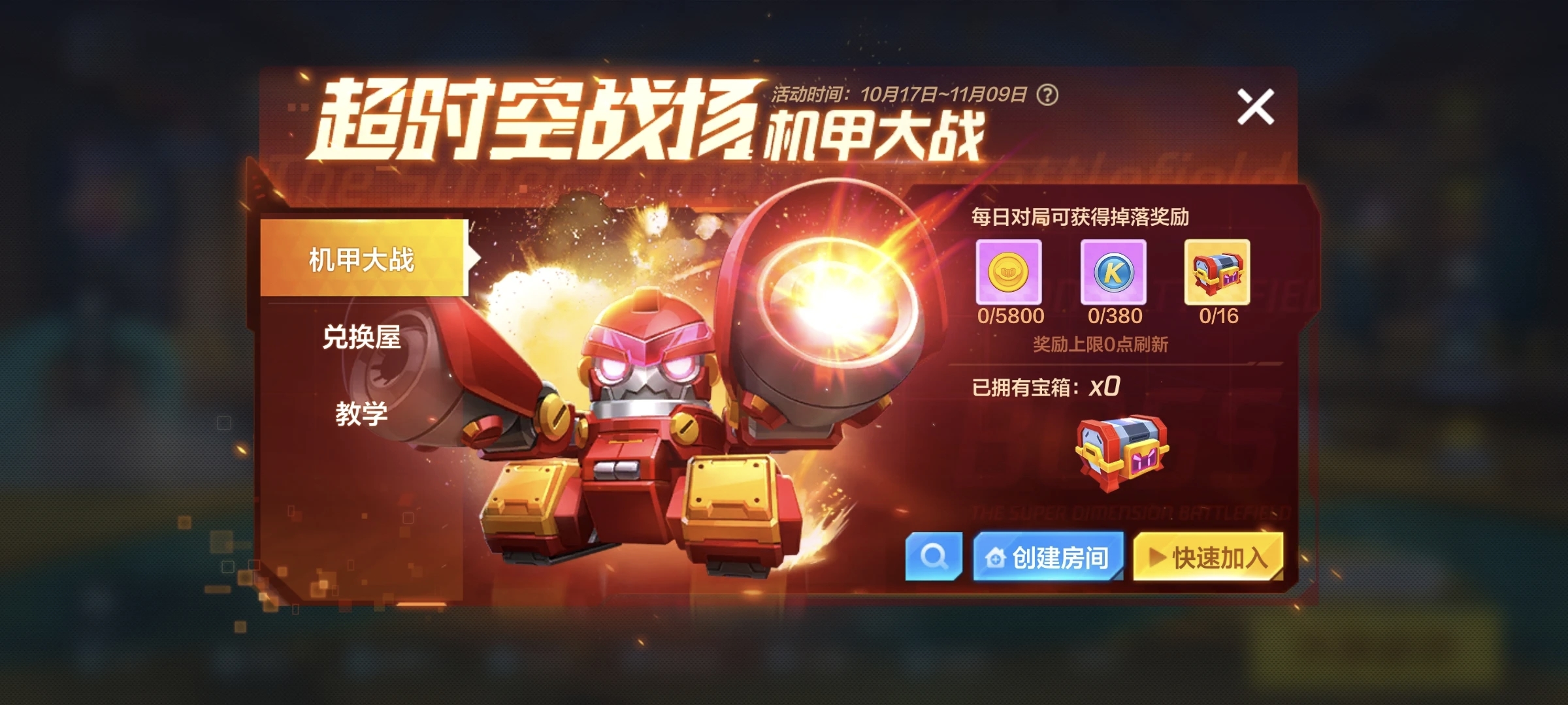 机械风暴席卷的战场,迎来能量巨变,超时空战场即将开放,迎击红色迪斯欧德!10月17日起,机甲大战开启,击败BOSS夺取宝藏,赢得丰厚奖励!