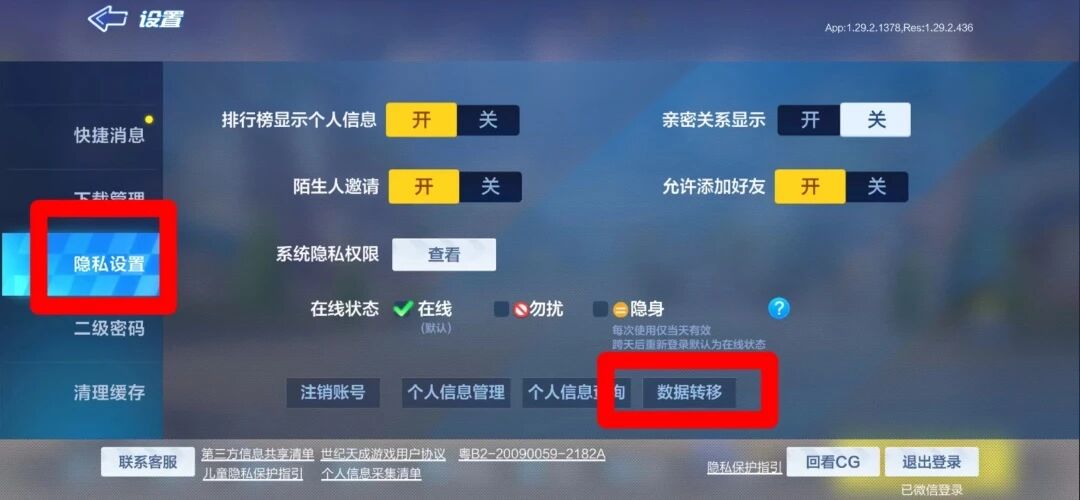找到设置-隐私设置-数据转移