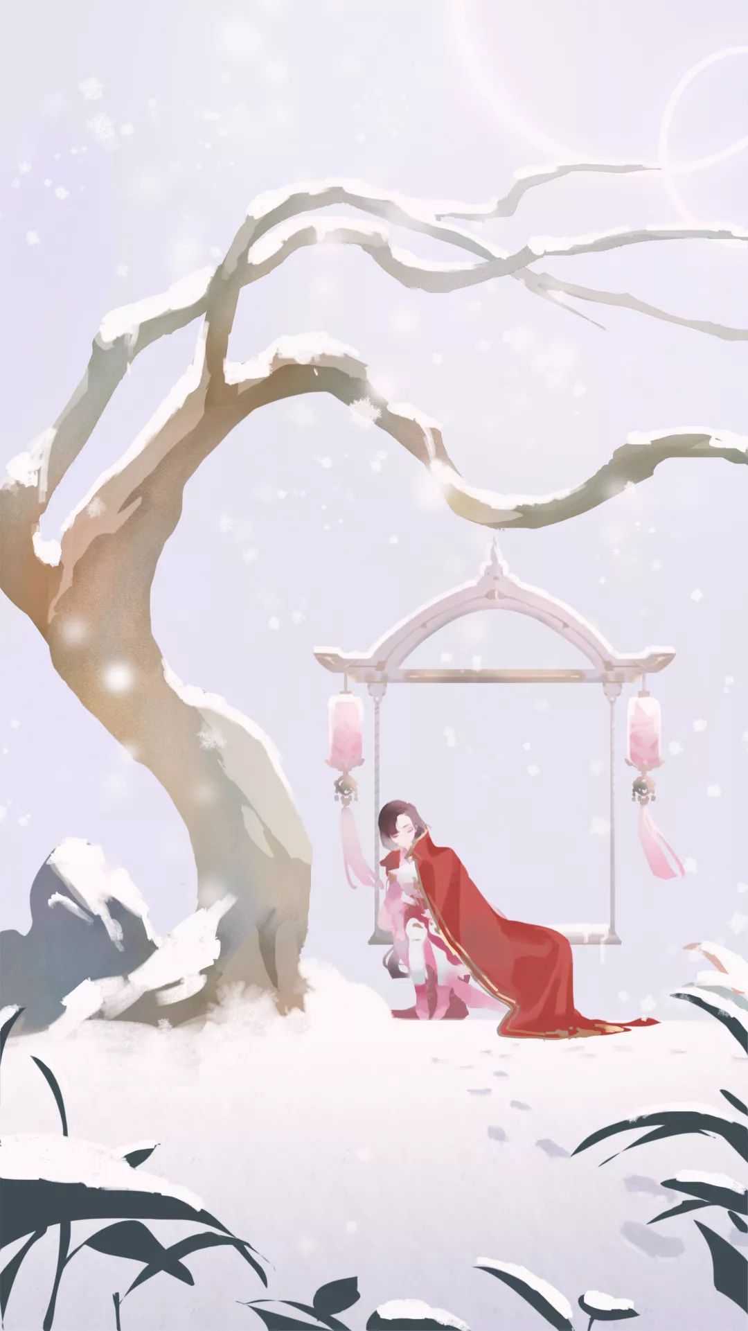 白雪皑皑中倚秋千睡去的小七姑娘啊,梦中可有一人身着铠甲,为你覆上殷红披风?
