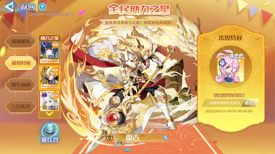 活动时间:9月23日更新后——9月30日更新前