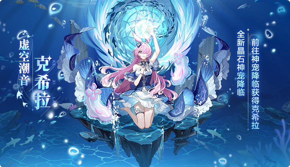 1.在神宠降临活动中,消耗奥拉晶石获得降临进度,达到一定进度后即可获得【虚空潮音】克希拉的契约/进化/突破;