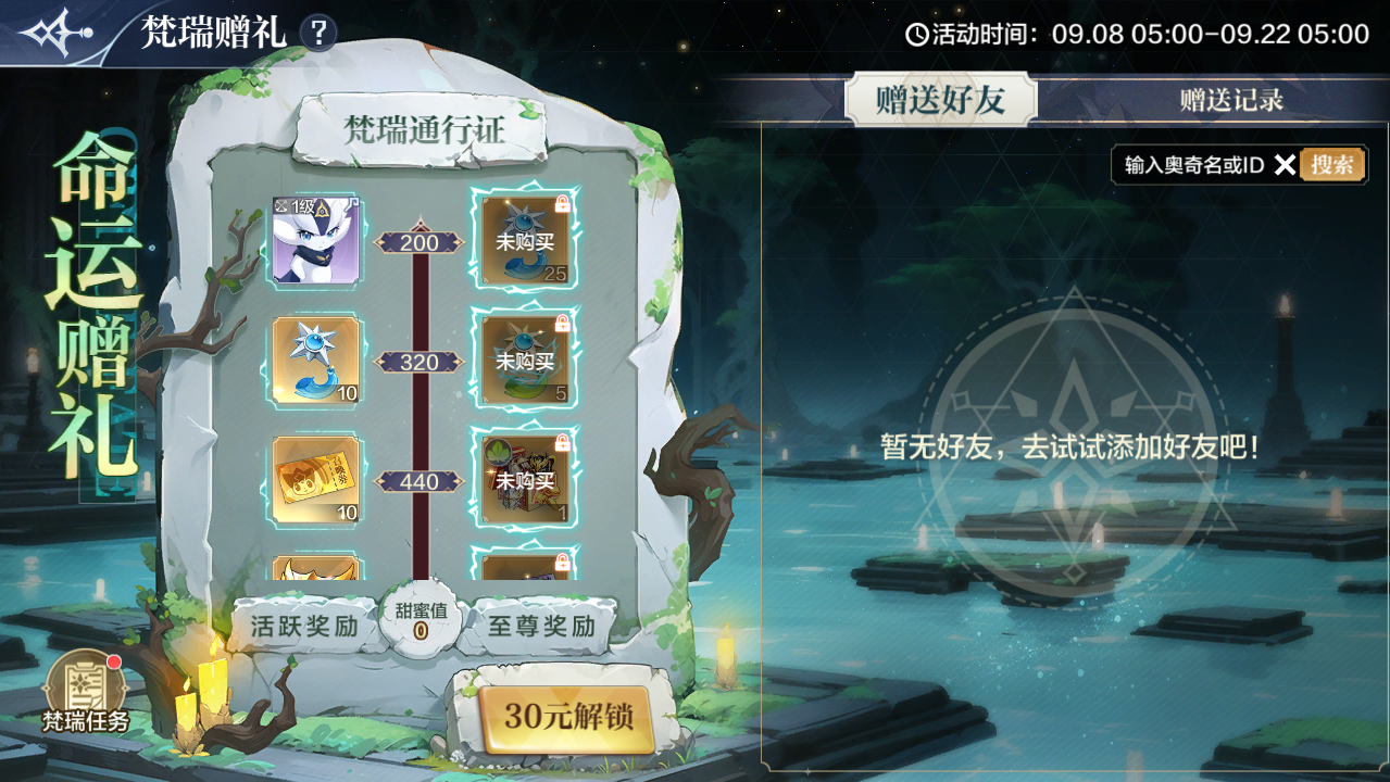 活动内容:最新精灵命运终章·梵瑞养成礼包特惠上线!梵瑞赠礼信物限时开启售卖!