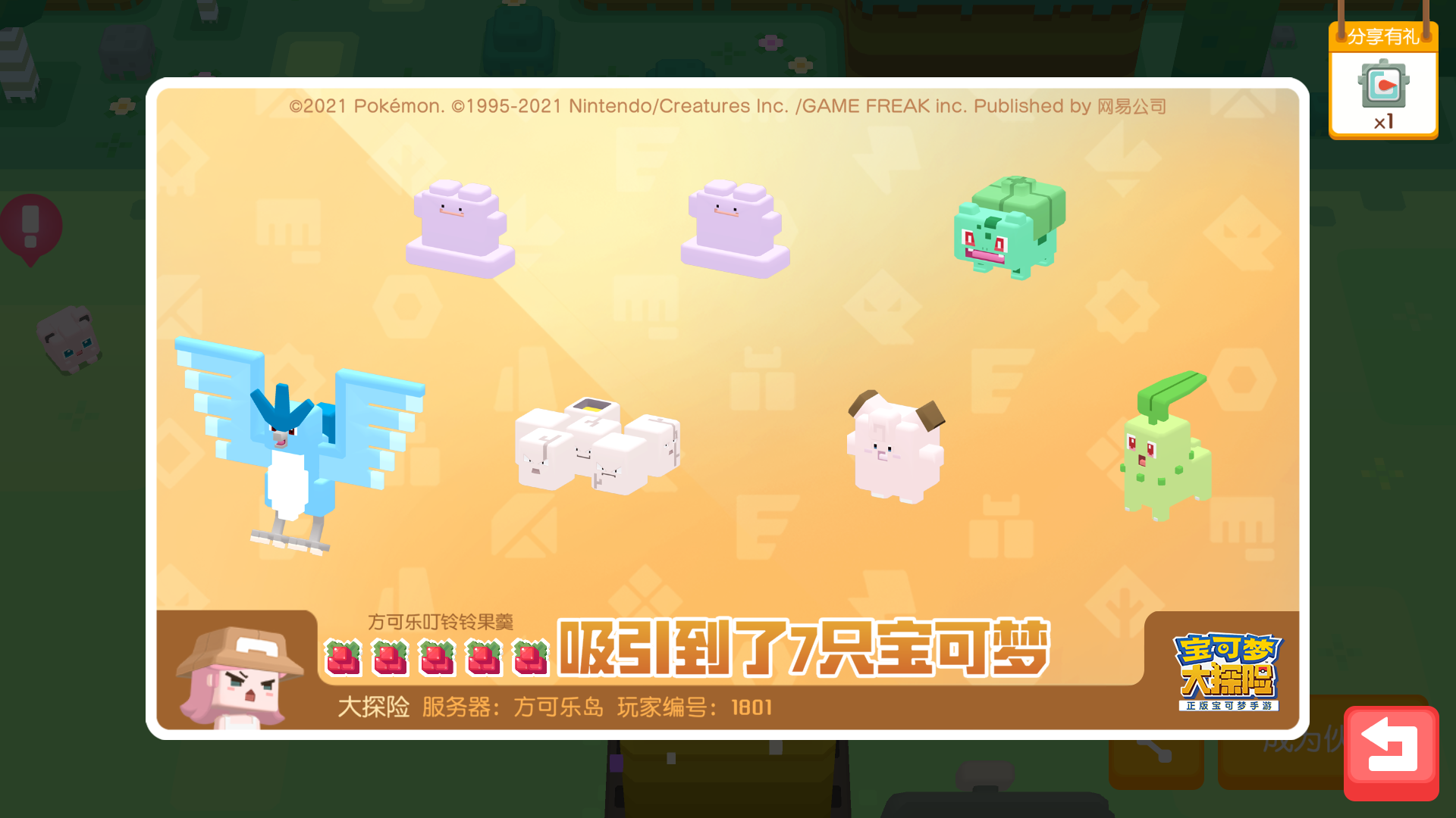 在这些特别的宝可梦中,最特殊的就是吉利蛋啦~吉利蛋将携带特殊技能“治愈波动”助阵本次料理活动,技能”治愈波动“有回复的作用,会帮助玩家在游戏中作战哟!同时,幸运探险家们还有机会能吸引到低概率的急冻鸟~