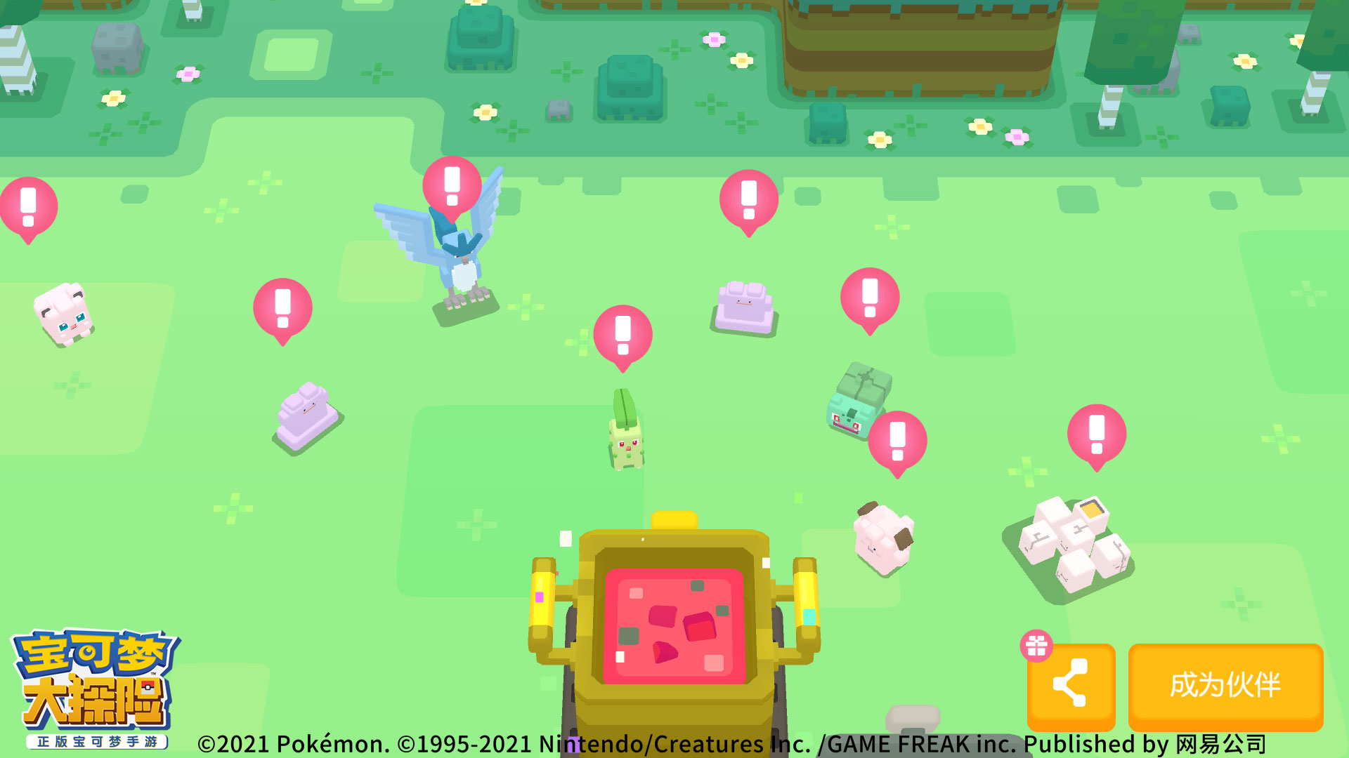 此款料理可以吸引到一群可爱又特别的宝可梦,它们包括皮皮、胖丁、大舌头、蔓藤怪、妙蛙种子、蛋蛋、百变怪、菊叶草、吉利蛋和急冻鸟~宝可梦们已经迫不及待地想在这个圣诞与探险家们相遇啦!