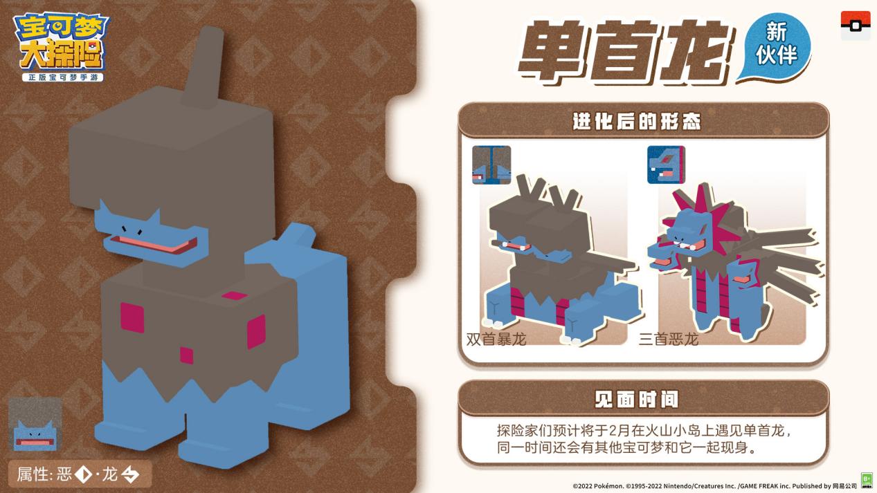 实力能与传说宝可梦比肩的宝可梦“三首恶龙”,进化之初的“单首龙”已经长得十分威武霸气,而它的实力也会随着头颅数量的增加进一步提升。