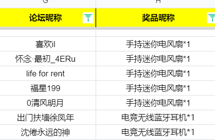 大家好,感谢大家积极的参与本次活动,现将活动中奖名单公布如下↓,没中奖的友友请不要气馁,多关注论坛最新活动公告,祝大家游戏愉快。