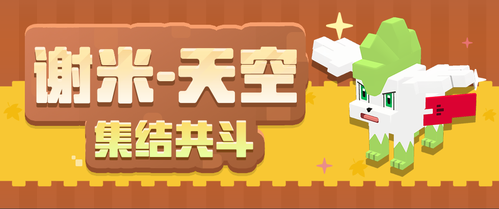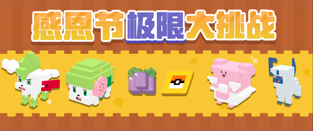 11月17日更新后,将连续三周周末20:00-20:15迎来感恩节活动强大宝可梦首领的挑战。11月19日-11月20日,挑战“幸福蛋”;11月26日-11月27日,挑战“谢米-天空”;12月3日-12月4日,挑战“谢米-陆地”。