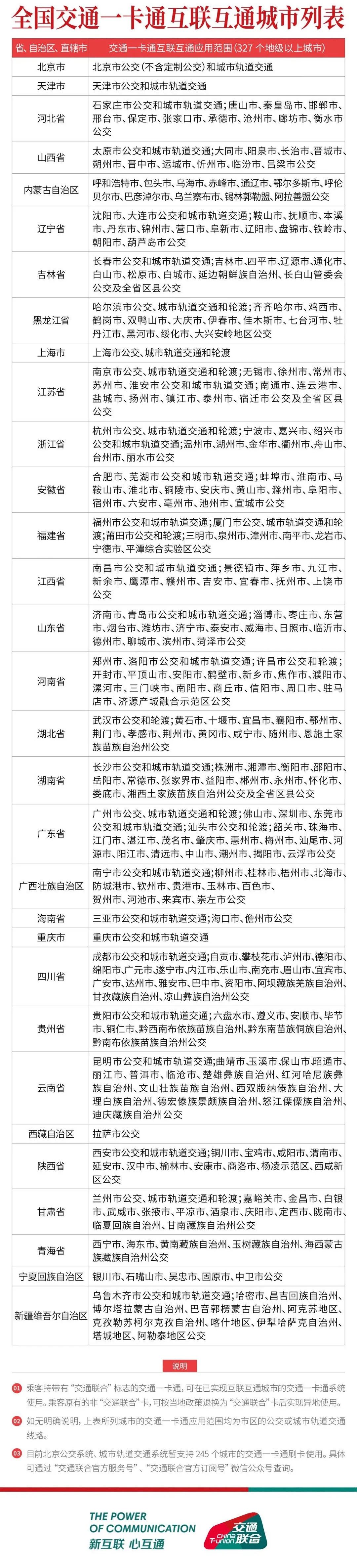暂未开通城市的少侠不要着急,交通联合应用全国一卡通是国家交通部主导的、正在稳步推进的大项目,各地市都在积极推进,只是改造进度不一,各城市、各线路、各领域开通有先后。预计今年底,就会有更多城市加入到互联互通的交通联合应用范围中。