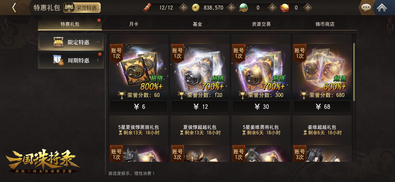 若主公们迫不及待想体验更为强力的战场体验,也可前往商店,购买限定特惠5星夏侯惇黑狼礼包。搭配夏侯惇超越礼包使用效果更佳。在超越后,各位主公们不仅将拥有更为强力畅爽的割草体验,还将解锁更为酷炫的视觉冲击!