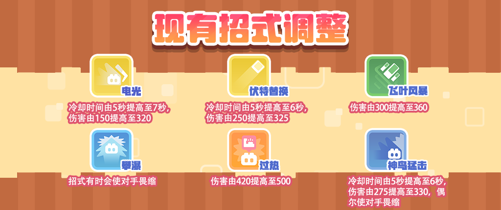 【1】电光:冷却时间由5秒提高至7秒,伤害由150提高至320。