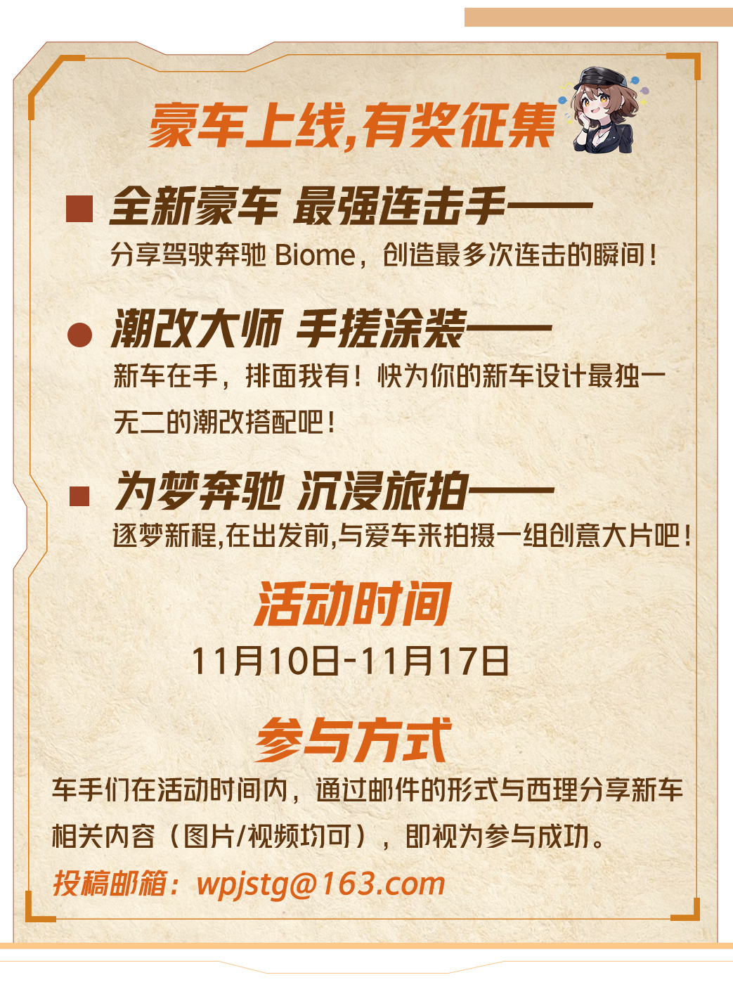 除此之外,还将开放涂装创意/新车旅拍赛道