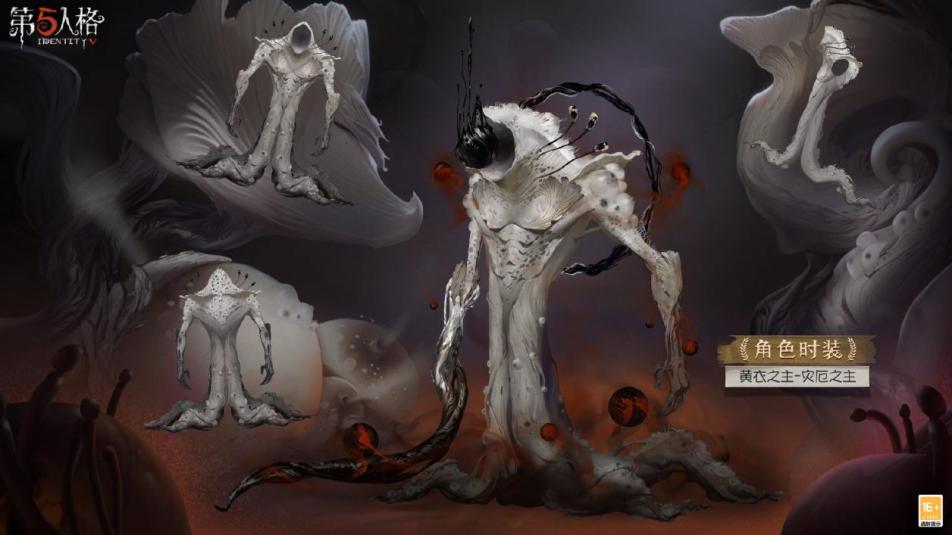 【稀世时装】黄衣之主-灾厄之主犹如白色的章鱼化身,触手与孢子紧密结合,凸起的眼珠子一大一小,密密麻麻仿佛是被吞噬的灵魂在拼命往外挣扎!面部仅剩的那颗黑到无止境的流体球,似乎预示着一切皆是无尽的深渊......