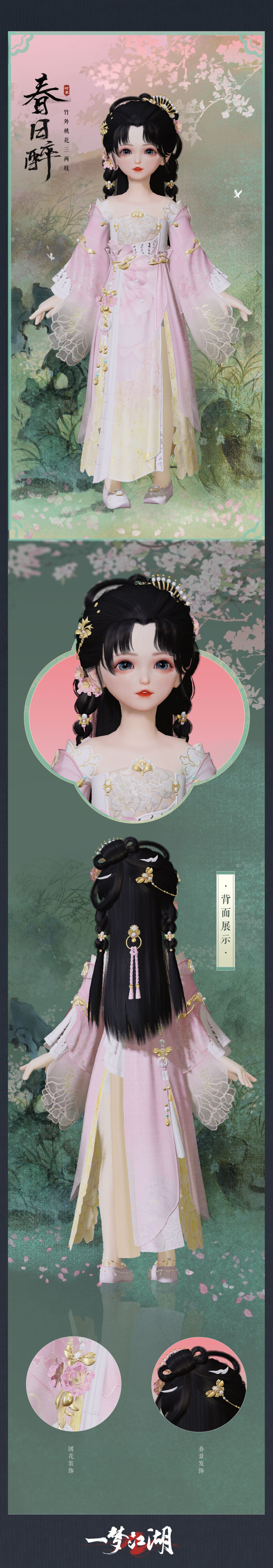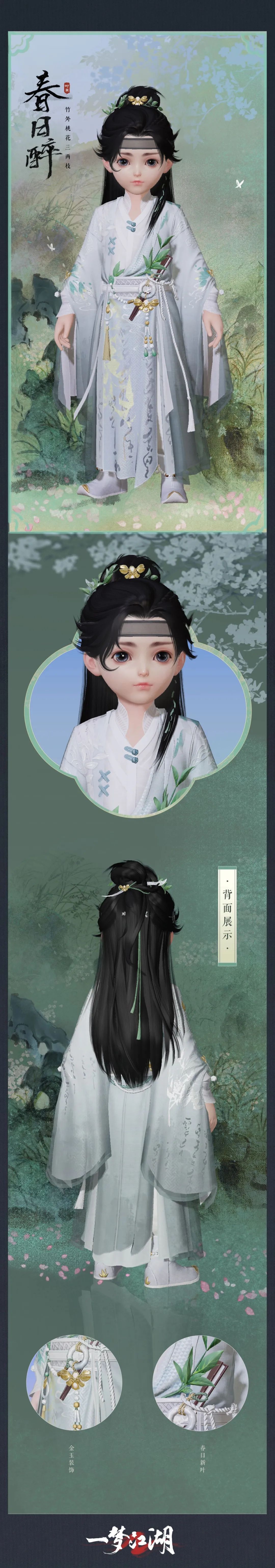时装·春日醉女款以淡雅的粉色为主,精选上等绸缎,以工笔细细勾勒出春日芙蓉的轮廓,那花瓣层层叠叠,仿佛要溢出布面;男款取色自水墨竹影,还原竹林的清雅宁静,袍身下摆写意书法,彰显蓬勃意气,共同为少侠呈现春日的灵动之美。