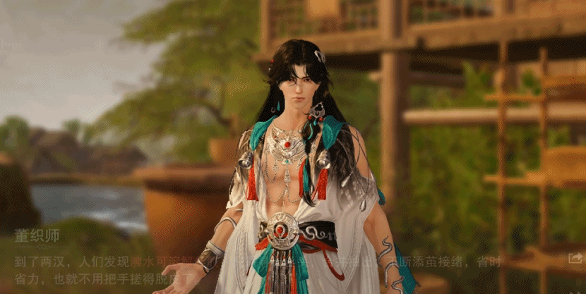在文物奇遇·采桑子篇章中,在奇遇中,少侠需得从养蚕开始用心制作,根据蚕“三眠三起”的习性精心养护,更要为不同阶段的蚕准备不同的桑叶,薄饲勤添。除了养蚕外,少侠还需要加以锻炼学会煮茧纺丝。