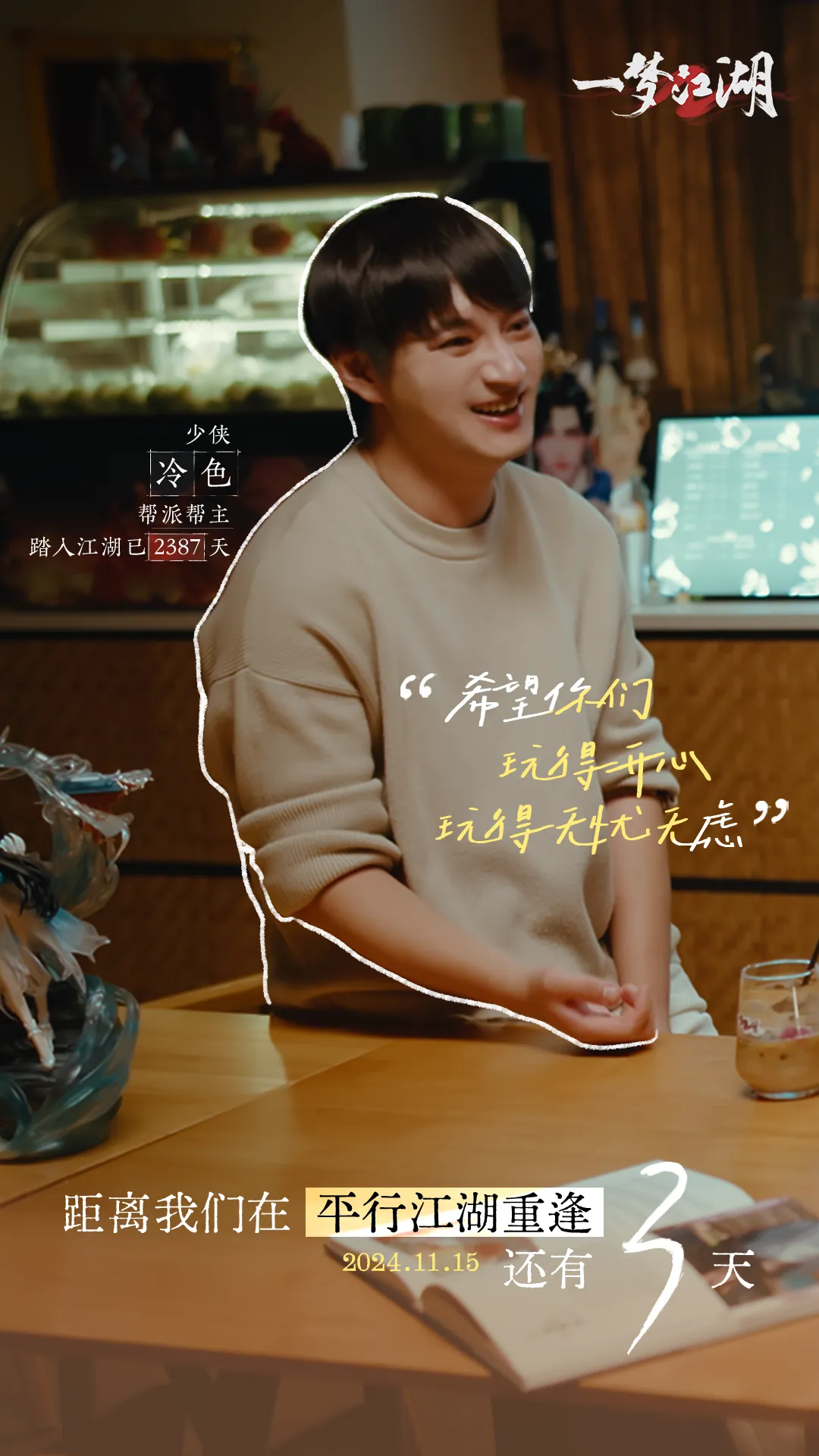 作为同人咖啡馆主,他经常会数着店里来自五湖四海的少侠写下的心愿。对于即将到来的平行江湖,老哥也许下了自己的心愿,希望平行江湖能够再续热血故事,遗憾的故事都能迎来圆满的结局。