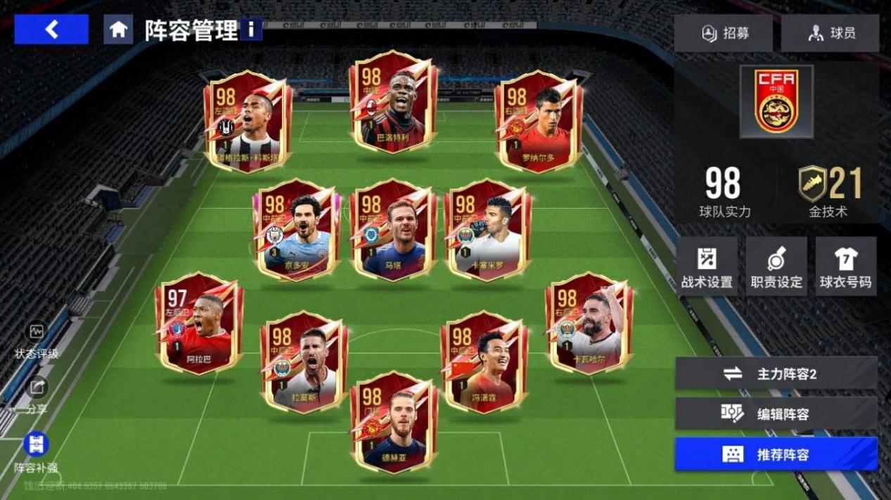 本次版本更新将针对阵容管理界面进行编辑优化,优化后各位经理可以更清晰的看到球员卡面,更直观地了解阵中球员的金技术总量,以便更加针对性地调整阵容!