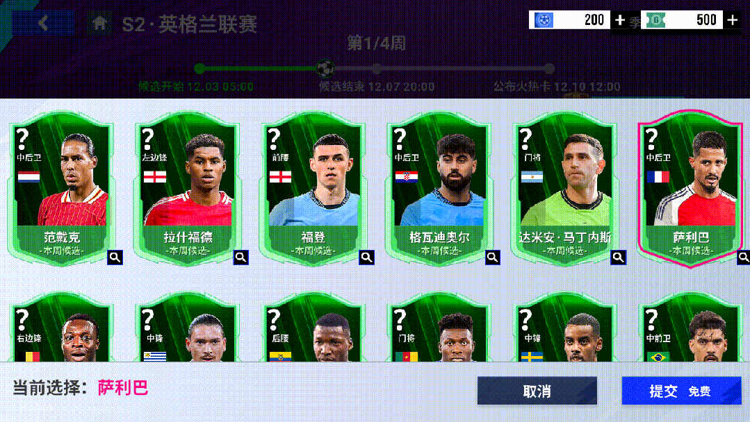 12月3日,S2赛季【赛季卡·火热】首周竞猜正式开启!各位经理可以在范戴克、福登、萨利巴、拉什福德、达米安·马丁内斯等来自20支英格兰顶级联赛球队的候选球星中进行竞猜,选择心目中的周最佳人选!首周【赛季卡·火热】竞猜于12月7日20:00截止,入选名单将于12月10日12:00公布,届时,竞猜正确的玩家们可以获得对应的【赛季卡·火热】球星!