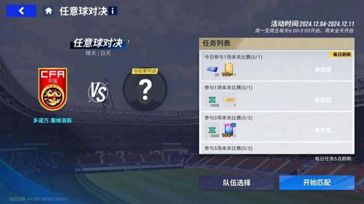 新一期任意球竞技将于12月4日开启,完成任意球竞技,获得丰富的奖励!