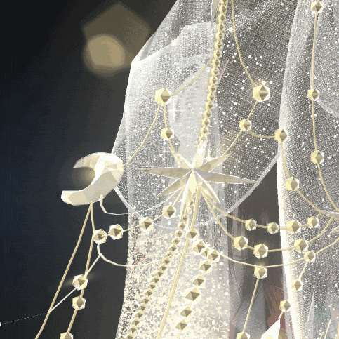 少侠可将它披挂在肩头,星辰将为你牵起帷幔,星纱薄若无物,光之所覆只留下烨烨辉光。