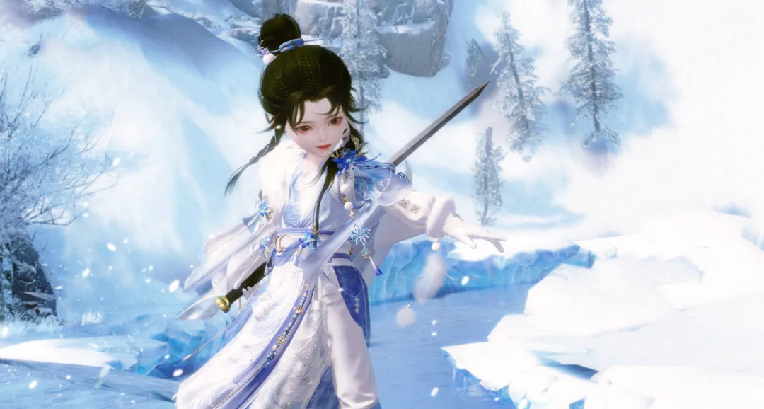 我循着他指的方向看去,只见龙渊附近站着几位少侠,身穿祥冬至最新时装,雪与他们一同试剑起舞,飞舞的雪花落在他们身畔,剑影漫霜华,琼花映飞光,堪称武侠界的顶级浪漫!