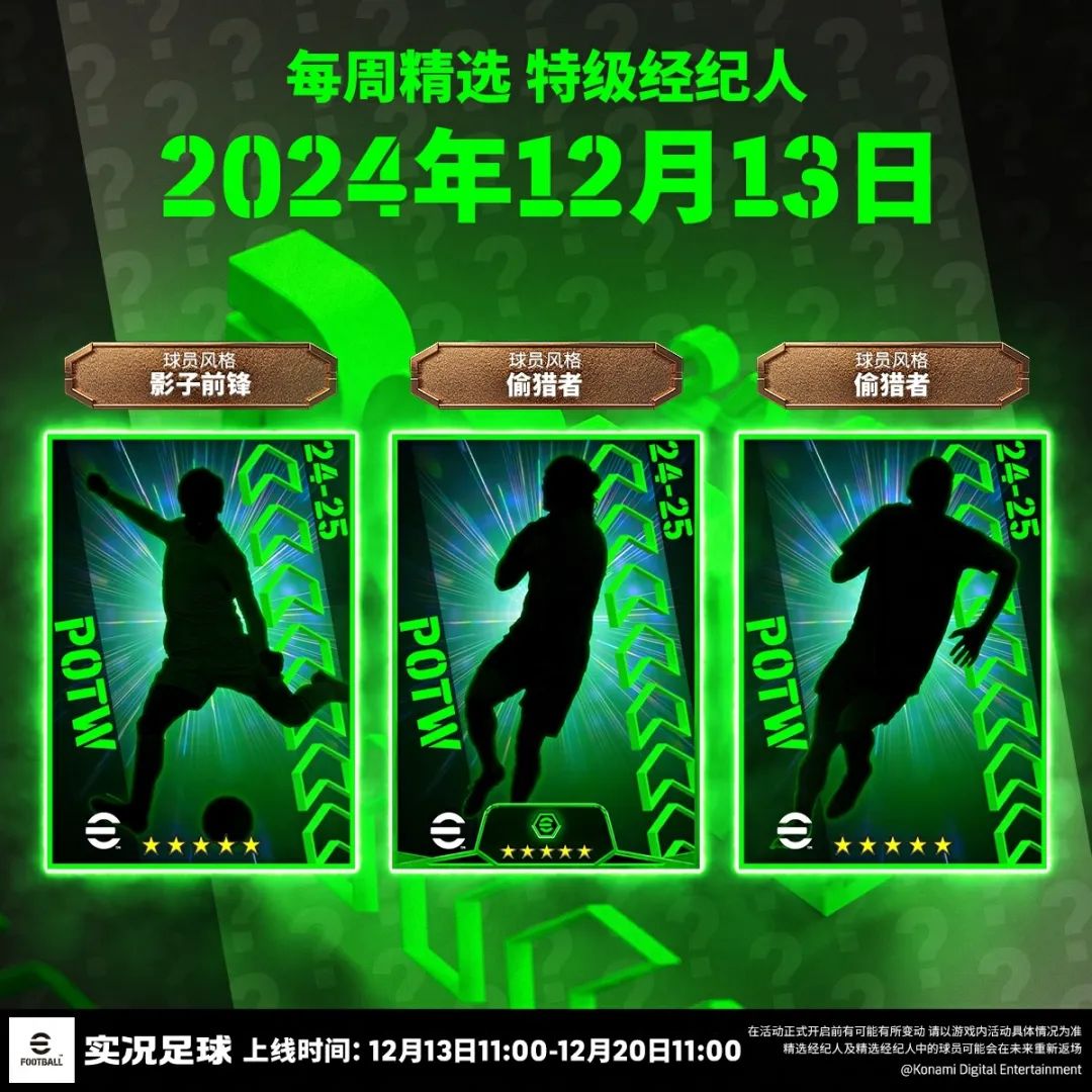 【每周精选 特级经纪人(12.13~12.20)】明日上线,你将有机会获得本周在赛场表现优异的精选球员。
