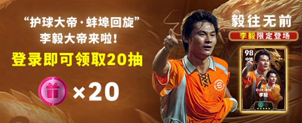 【开服赠礼 登录有礼】活动期间,玩家登录游戏即可获得20抽【护球大帝·蚌埠回旋 概率提升经纪人】作为奖励!