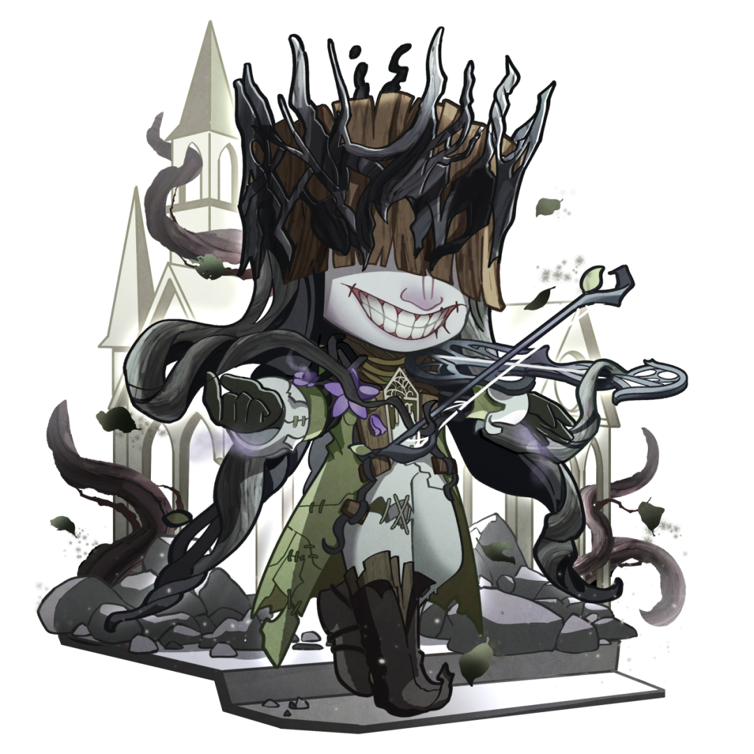 优雅的行礼揭开盛大舞会的帷幕,胸口伸出的藤蔓却试图阻止琴弦奏响,他蛮横地挣脱束缚,驱赶捣乱的黑鸦,继续将狂热的旋律挥洒。